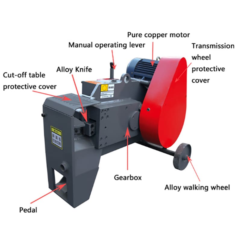 This cutting machine is equipped with high-quality alloy cutting blades with outstanding hardness and cutting sharpness for precise and efficient steel bar cutting. It adopts military-grade durable V-belts and supports long-term high-load operation. Meanwhile, it is fitted with the well-known Chinese Zhengtai electrical control system, which guarantees sensitive control, stable circuit operation and low failure rate. - Dual Foot & Hand Clutch Operation